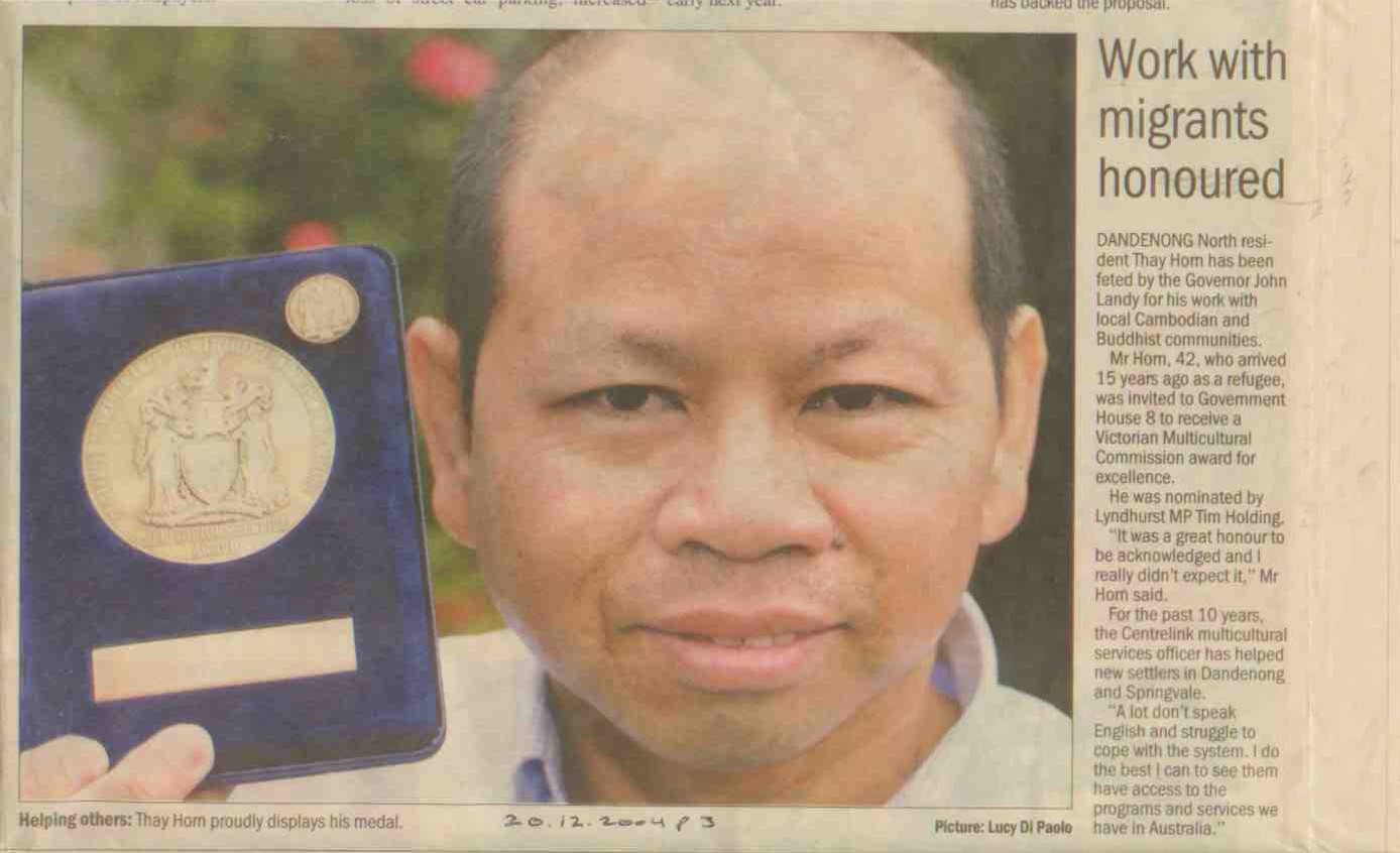 This is in recognition for his work in the field of social welfare and settlement service for Khmer communities.